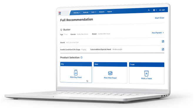 Calcule o peso saudável e os custos de alimentação com a nossa ferramenta Quick Reco, fácil de usar.
